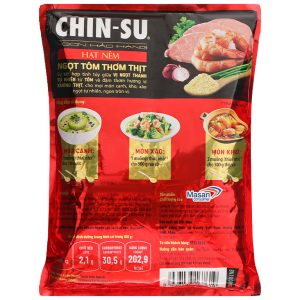 Hạt nêm Chin-Su ngọt tôm thơm thịt được chế biến từ các thành phần chọn lọc như chiết xuất tôm và thịt, mang lại vị ngọt tự nhiên và hương thơm hấp dẫn cho món ăn. Nhờ sự kết hợp hài hòa giữa các nguyên liệu, sản phẩm giúp món ăn có vị đậm đà nhưng vẫn thanh nhẹ, phù hợp với khẩu vị của nhiều gia đình.